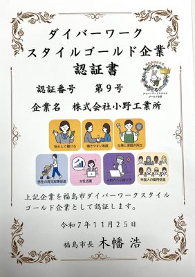 福島市「ダイバーワークスタイルゴールド企業」に認証されました